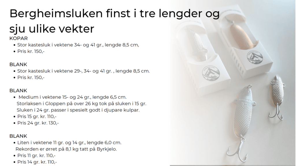 – Bergheimsluken er 100 prosent norskprodusert, og har evna til å kroke stor laks, smiler han.