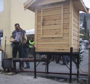 Den gangen salta jeg på ei fjøl i garagen. Nå har jeg skaffet meg plastbakker til saltingen, Godt med salt/sukker i bunnen og legger de ferdige filetene med skinnsida ned og godt med salt/sukker oppå filetene. Skal du legge flere lag legger du kjøtt mot kjøtt og skinn mo skinn. Minimum 3 døgn og er laksen større kan du øke litt. Løft litt på sidene (ta de fra hverandre ett par ganger under salteprossen). Når laksen ser og kjenne rimelig saltet ut, spyl av saltet og tørk laksen , gjerne ved å la den henge litt på et tørt sted. Neste trinn nå er å henge den i “røyka”. Noen foretrekker å legge den flatt på rister, men jeg foretrekker å henge den opp med litt avstand mellom sidene. Har anskaffet egnede kjøttkroker som allerde er plasser under ørebeinet da jeg forhåndstørket laksen. Konjakken kan nå føres på med en liten sprayflaske og ikke så mye at det begynner å renne. Laksen skal henge med hodeenden opp.