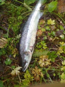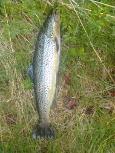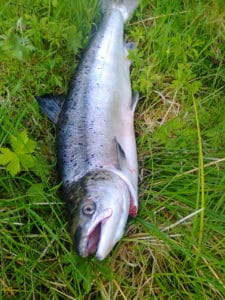 På Nordvestlandet tar «tarten» som jeg kaller smålaksen fra 1 til 3 kilo sølvmeppsen like så godt som laksen. Slik sett beviste ikke testen min noe særlig, men den visste jo at disse to spinnerne fanger godt både på jevn vassføring i Børselva i Finnmark og på flomelver i Romsdal og på Sunnmøre. Den største laksen jeg har tatt på spinner var 8.5 kilo. Aller best synes jeg den fungerer på nygått smålaks og fisk på 3-4 kilo. I Børselva i Porsanger har jeg fiska bra med sjørøye på spinner også, gjerne små og svarte eller blanke ned rødt og blått. Spinneren “Flying condom” er effektiv i mørke elver med myrfarge etter regn. Navnet har den fått på grunn av gummikroppen. Om den er lik en kondom kan sikkert diskuteres, men i likhet med andre effektive spinnere jeg har fiska mye med irriterer den laksen på standplassen eller på vei opp brekkpartiet av hølen godt nok. Best har den fiska på smålaks på grunt vann etter mine erfaringer.